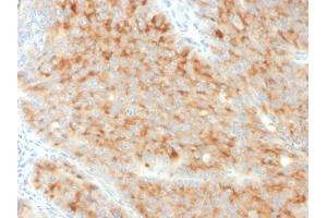 Known Application: Immunohistochemistry (Formalin-fixed) (1-2 μg/mL for 30 min at RT),(Staining of formalin-fixed tissues requires boiling tissue sections in 10 mM Citrate Buffer, pH 6.0, for 10-20 min followed by cooling at RT for 20 minutes),Optimal dilution for a specific application should be determined.