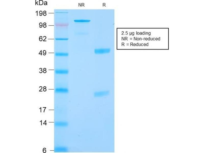 Known Application: Immunohistochemistry (Formalin-fixed) (0.5-1 μg/mL for 30 minutes at RT)(Staining of formalin-fixed tissues requires boiling tissue sections in 10 mM Citrate Buffer, pH 6.0, for 10-20 min followed by cooling at RT for 20 minutes)Optimal dilution for a specific application should be determined.