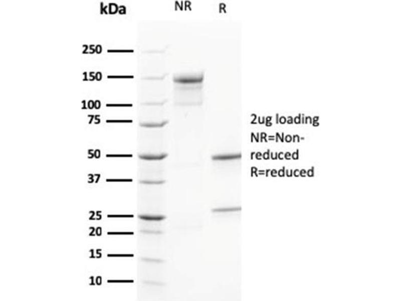 Known Application: Western Blot (0.5-2 μg/mL),Immunohistochemistry (Formalin-fixed) (1-2 μg/mL for 30 minutes at RT)(Staining of formalin-fixed tissues requires boiling tissue sections in 10 mM Citrate Buffer, pH 6.0, for 10-20 min followed by cooling at RT for 20 minutes)Optimal dilution for a specific application should be determined.