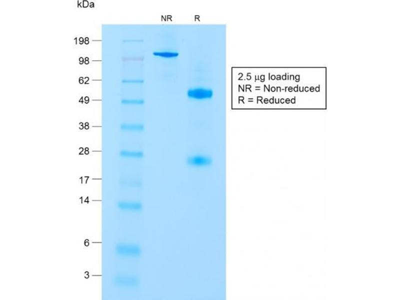 Known Application: Immunohistochemistry (Formalin-fixed) (0.5-1 μg/mL for 30 minutes at RT)(Staining of formalin-fixed tissues is enhanced by boiling tissue sections in 10 mM Tris with 1 mM EDTA, pH 9.0 for 10-20 min followed by cooling at RT for 20 minutes)Optimal dilution for a specific application should be determined.