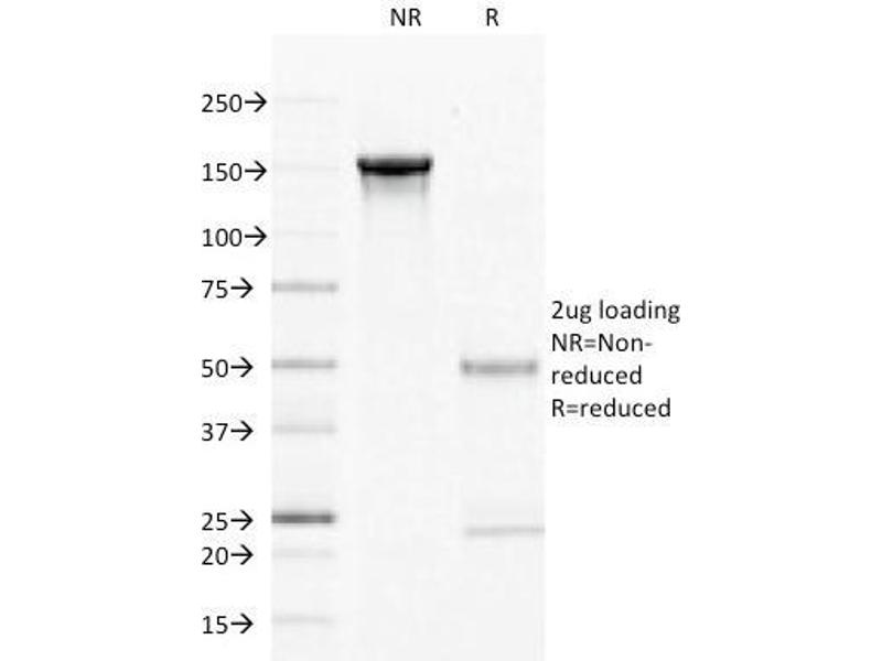 Known Application: ELISA (For coating, order antibody without BSA),Flow Cytometry (1-2 μg/million cells), Immunofluorescence (1-2 μg/mL),Immunohistochemistry (Formalin-fixed) (1-2 μg/mL for 30 minutes at RT),(Staining of formalin-fixed tissues requires boiling tissue sections in 10 mM Tris buffer with 1 mM EDTA, pH 9.0, for 10-20 min followed by cooling at RT for 20 minutes),Optimal dilution for a specific application should be determined.