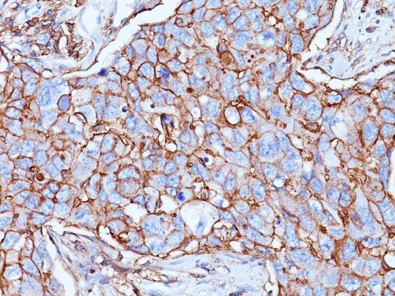 - Recognizes a cell surface glycoprotein of 80-95 kDa (CD44) on lymphocytes, monocytes, and granulocytes (Leucocyte Typing Workshop V). Its epitope is resistant to digestion by trypsin and chymotrypsin. This MAb selectively interferes with lymphocyte binding to lymph node, mucosal and synovial endothelium. The CD44 family of glycoproteins exists in a number of variant isoforms, the most common being the standard 85-95 kDa or hematopoietic variant (CD44s). Higher molecular weight isoforms are described in epithelial cells (CD44v), which are believed to function in intercellular adhesion and stromal binding. CD44 immunostaining is commonly used for the discrimination of urothelial transitional cell carcinoma in-situ from non-neoplastic changes in the urothelium.