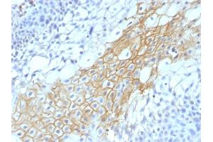 Known Application: Immunohistochemistry (Formalin-fixed) (1-2 μg/mL for 30 minutes at RT)(Staining of formalin-fixed tissues is enhanced by boiling tissue sections in 10 mM Citrate Buffer, pH 6.0, for 10-20 min followed by cooling at RT for 20 minutes)Optimal dilution for a specific application should be determined.