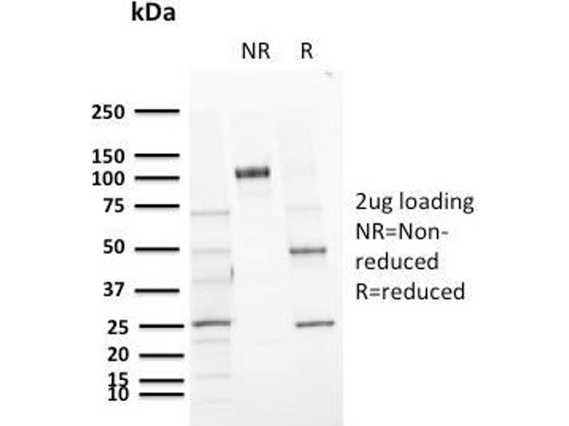 Known Application: ELISA (For coating, order without BSA), Flow Cytometry (0.5-1 μg/million cells), Immunofluorescence (0.5-1 μg/mL), Immunohistochemistry (Formalin-fixed) (1-2 μg/mL for 30 minutes at RT)(Staining of formalin-fixed tissues requires boiling tissue sections in 10 mM citrate buffer, pH 6.0, for 10-20 min followed by cooling at RT for 20 minutes)Optimal dilution for a specific application should be determined.