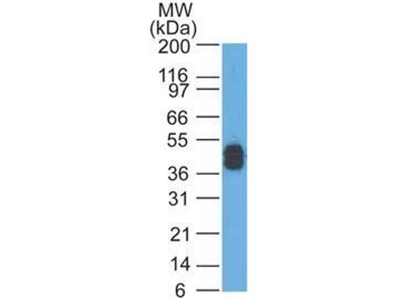 Known Application: Flow Cytometry (0.5-1 μg/million cells), Immunofluorescence (1-2 μg/mL), Western Blot (0.5-1 μg/mL), Immunohistochemistry (Formalin-fixed) (0.5-1 μg/mL for 30 min at RT)(Staining of formalin-fixed tissues requires boiling tissue sections in 10 mM citrate buffer, pH 6.0, for 10-20 min followed by cooling at RT for 20 minutes)Optimal dilution for a specific application should be determined.
