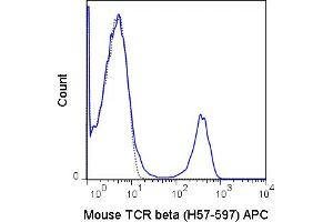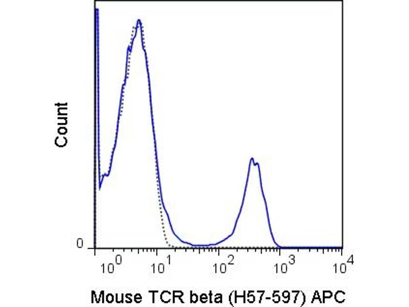 - The H57-597 antibody is specific for the beta chain of the mouse T cell Receptor (TCR). This cell surface protein combines with a second protein chain (alpha chain) to form the alpha-beta TCR that is expressed by NK1.1+ thymocytes, NKT cells, and the majority of peripheral T cells. A small number of T cells may express an alternative heteromer of gamma and delta protein chains, known as the gamma-delta TCR. These receptors participate in a complex with CD3, and with the co-receptors CD4 or CD8, to recognize and respond to antigens bound to MHC molecules on antigen-presenting cells. Such interactions promote T cell receptor signaling (T cell activation) and can re- sult in a number of cellular responses including proliferation, differentiation, production of cytokines or activation-induced cell death. The H57-597 antibody is used as a phenotypic marker for T cells expressing the alpha-beta TCR. It is also widely used to cross-link surface TCR and thereby mimic TCR-mediated cell activation or induction of apoptosis. The antibody does not cross-react with cells expressing the gamma-delta TCR.