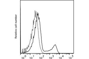 - Detection of guinea pig IFN-γ producing cells by flow cytometry. 5 μL is recommended for staining of 1 million cells in a total volume of 50 μL. PF647P is excited by the red laser (633 nm). The excitation max is 654 nm and the emission max is 672 nm. Detection of IFN-γ by flow cytometry in viable guinea pig spleen cells. Cells were stimulated for 16 hrs in the presence of PMA/ ionomycin and Brefeldin A. Cells were then fixed and permeabilized using 4 % paraformaldehyde and saponin, and subsequently stained with MT4A27-PF647P (solid line). Matched isotype control antibody (dashed line). The histogram derives from gated events of typical lymphocyte characteristics in forward and side light scatter. Flow cytometry was performed on a BD FACSVerse system.