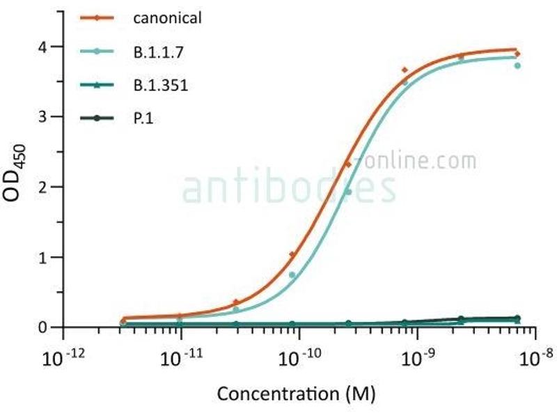 ABIN6990085 recognizes the S proteins from wt SARS-CoV-2 and variant B.1.1.7 alpha; the antibody does not bind S proteins from variants B.1.351 beta and P.1 gamma.
