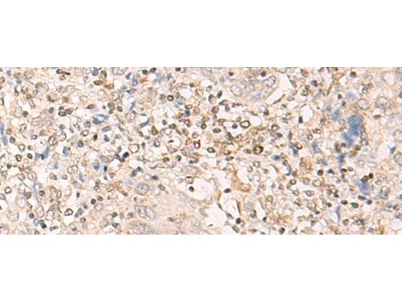 - EPSTI1 (Epithelial-stromal interaction protein 1), also known as BRESI1, is a 318 amino acid protein that is highly expressed in spleen, placenta, small intestine, liver, kidney, thymus, testis and salivary gland. Existing as three isoforms that are formed due to alternative splicing events, EPSTI1 is weakly expressed in normal breast tissue, but is heavily up-regulated in breast carcinoma, suggesting an important role for EPSTI1 in tumor formation and/or progression. Additionally, EPSTI1 is found in blood cells from systemic lupus erythematosus (SLE)-afflicted patients, implicating EPSTI1 as a potential protein involved in SLE.