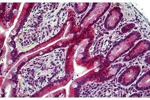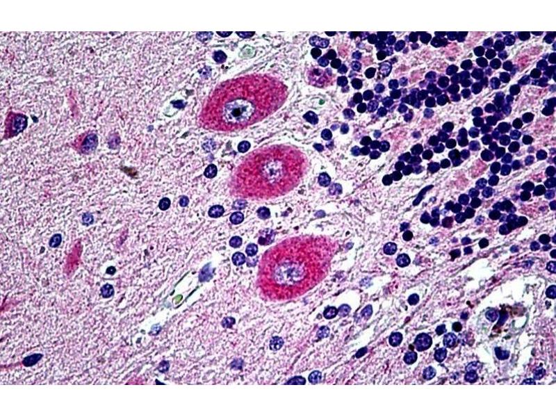 Immunohistochemistry: Paraffin embedded Human Small Intestine and Brain (Cerebellum). Recommended concentration: 3.75 μg/mL.