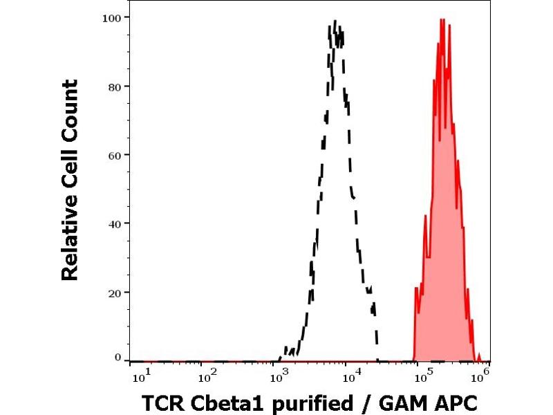 T cell receptor beta constant 1,Alpha-beta T cell receptors (TCRs) are antigen specific receptors, which are essential to the immune response and are present on the cell surface of T lymphocytes. They recognize peptide-loaded major histocompatibility complexes (pMHCs), that are displayed by antigen presenting cells (APCs). Binding of alpha-beta TCR to pMHC initiates TCR-CD3 clustering on the cell surface and intracellular activation of LCK, that phosphorylates the ITAM motifs of CD3gamma, CD3delta, CD3epsilon and CD3zeta, enabling the recruitment of ZAP70. In turn, ZAP70 phosphorylates LAT, which recruits numerous signaling molecules to form the LAT signalosome. The LAT signalosome propagates signal branching to three major signaling pathways, the calcium signaling, the mitogen-activated protein kinase (MAPK) kinase and the nuclear factor NFkappaB (NF-kB) pathways, leading to the mobilization of transcription factors, that are critical for gene expression and essential for T cell growth and differentiation. The T cell repertoire is generated by V-D-J-C rearrangements. This repertoire is then shaped by intrathymic selection events to generate a peripheral T cell pool of self-MHC restricted, non-autoaggressive T cells. Post-thymic interaction of alpha-beta TCRs with the pMHCs shapes TCR structural and functional avidity.,TCRCB1, TRBC1