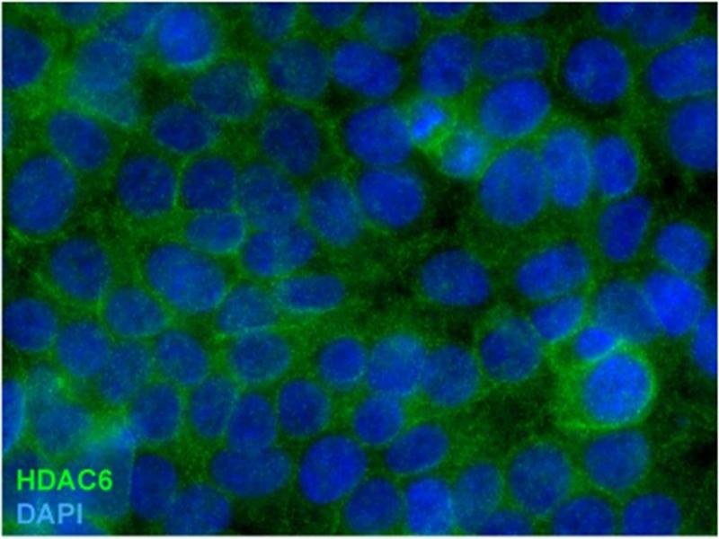 Histone deacetylase 6,Histone deacetylase 6 (HDAC6), like other histone deacetylases, affects gene expression by regulation of chromatin remodeling. HDAC6 contains an internal duplication of two catalytic domains which appear to function independently of each other. Besides histones, HDAC6 deacetylates also other substrates including alpha tubulin and HSP90 alpha, and is involved in protein trafficking and degradation, as well as in affecting of cell shape and migration. Deregulation of HDAC6 expression and activity is associated with many diseases.,Histone deacetylase 6