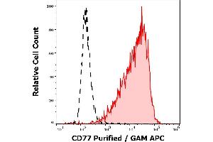 The rat monoclonal antibody 38.13 recognizes CD77 (globotriaosylceramide Gb3), a neutral glycosphingolipid expressed mainly on the surface of B cell populations, such as germinal center B cells and Burkitt´s lymphoma cells.