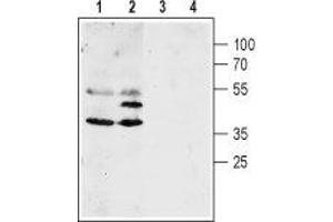 WCH4, Mercurial-insensitive water channel,Aquaporin 4 (AQP-4) belongs to a family of membrane proteins that allow passage of water and certain solutes through biological membranes. The family is composed of 13 members (AQP-0 to AQP-12).The aquaporins can be divided into two functional groups based on their permeability characteristics: the aquaporins that are only permeated by water and the aquaglyceroporins that are permeated by water and other small solutes such as glycerol. AQP-4 together with AQP-1, AQP-2 and AQP-5 belong to the first group1. Little is known about the function of the two newest members, AQP-11 and AQP-12.The proteins present a conserved structure of six transmembrane domains with intracellular N- and C-termini. The functional channel is a tetramer but each subunit has a separate pore and therefore the functional channel unit, contains four pores1.AQP-4 is the major membrane water channel in the central nervous system. The channel is expressed in astrocyte foot processes in direct contact with capillary vessels in the brain suggesting a role in water transport under normal and pathological conditions. Indeed, transgenic mice lacking AQP-4 have reduced brain swelling and improved neurological outcome following water intoxication and focal cerebral ischemia. In contrast, brain swelling and clinical outcome are worse in AQP-4-null mice in models of vasogenic (fluid leak) edema caused by freeze-injury and brain tumor, probably due to impaired AQP-4-dependent brain water clearance2.In addition, it has been recently shown that neuromyelitis optica (NMO), an inflammatory demyelinating disease that selectively affects optic nerves and spinal cord, is caused by the development of an autoantibody directed against AQP-43.