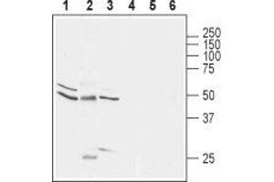 Glycine receptor subunit alpha-1, Glycine receptor 48 kDa subunit, Glycine receptor strychnine-binding subunit, GLRA1, Glyr,Glycine receptors (GlyRs) mediate ionotropic inhibitory neurotransmission in the CNS where they play an essential role in inhibition of motor neurons in the spinal cord and brainstem1. The glycine receptor is composed of three ligand-binding subunits of 48 kDa (α) and two homologous polypeptides of 58 kDa (β) that span the postsynaptic membrane in a pentameric arrangement to form a Cl--selective channel2. So far, at least three different α-subunit variants of the GlyR have been identified: α1, α2 and α33. Homo-oligomeric α2 receptors have a low strychnine-binding affinity and are considered to represent a neonatal form of GlyR, which is replaced during development by receptors containing the α1 subunit. Adult GlyRs are predominantly composed of α1 and β subunits, the α3 subunit being expressed at low levels in only a few brain regions4.GlyRα1 subunits are widely expressed and contribute to many processes in the CNS, including inflammatory pain perception, modulation of auditory and visual pathways, and neurotransmission in the cerebellar cortex5.Mutations in glycine receptor α1 subunits cause human hereditary hyperekplexia, a disorder characterized by an exaggerated startle response, which is a consequence of the role of GlyRs in motor reflex circuits of the spinal cord6.