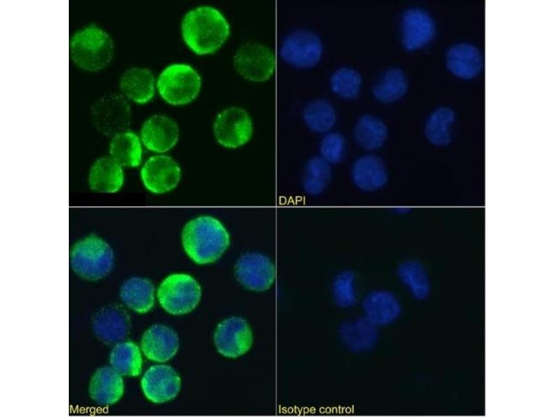 - BALB/c mice were immunized intraperitonally with COS cells transfected DQP (Domain 4 of the common beta-chain) expression constructs. The immunizations were repeated 4 times at 2-week intervals. Four weeks after the final immunization, a mouse was boosted with COS transfectants intravenously. Three days later, splenocytes were harvested and fused with NS-1 myeloma cells. Hybridoma supernatants were screened on CHO DQP cells by flow cytometry, with untransfected CHO cells as a control. All antibodies were from single hybridoma clones as selected by a limiting dilution method. MoAbs were purified from ascites fluid or hybridoma supernatant by a protein A sepharose column.