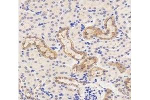 The ATP-binding cassette transporter 6 (ABCC6) gene, also named as MRP6, is a cellular transmembrane protein transporter and belongs to ATP-binding cassette (ABC) family. ABCC6 is an ATP-dependent transporter contains two ATP-binding domains. It is mainly found in the liver, the proximal tubules of the kidneys and the intestines. ABCC6 is involved in a pathway of extracellular nucleotide metabolism and the regulation of tissue calcification. Mutations of ABCC6 leads to pseudoxanthoma elasticum (PXE) which is a rare autosomal recessive disorder. Mutations of ABCC6 can also lead generalized arterial calcification of infancy-2 (GACI2). 27848-1-AP detects two isoforms of ABCC6 protein around 165 kDa and 96 kDa in SDS-PAGE.
