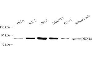 DEAD box proteins, characterized by the conserved motif Asp-Glu-Ala-Asp (DEAD), are putative RNA helicases. They are implicated in a number of cellular processes involving alteration of RNA secondary structure such as translation initiation, nuclear and mitochondrial splicing, and ribosome and spliceosome assembly. Based on their distribution patterns, some members of this family are believed to be involved in embryogenesis, spermatogenesis, and cellular growth and division. This gene encodes a DEAD box protein, and it is activated by Myc protein.