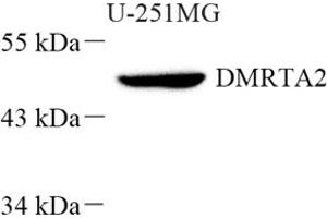 DMRTA2 is a 542 amino acid protein that localizes to the nucleus and contains one DM DNA-binding domain. Expressed testis, DMRTA2 is thought to be involved in sexual developmental processes during maturation. The gene encoding DMRTA2 maps to human chromosome 1, which spans 260 million base pairs, contains over 3,000 genes and comprises nearly 8 % of the human genome. Chromosome 1 houses a large number of disease-associated genes, including those that are involved in familial adenomatous polyposis, Stickler syndrome.