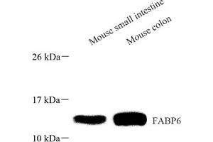 Fatty acid binding protein 6 (FABP6, also known as the ileal bile acid binding protein IBABP) is regarded as a bile acid binding protein found in the distal portion of the small intestine and may be important in maintaining bile acid homeostasis. FABP6 is reportedly up-regulated in colorectal cancer, it has been suggested as a link between bile acids and the risk of colorectal cancer. And also, it was showed a potential drug target for the treatment of diabetes. There are 2 isoforms of this protein,one of which is about 14 kDa we detected.