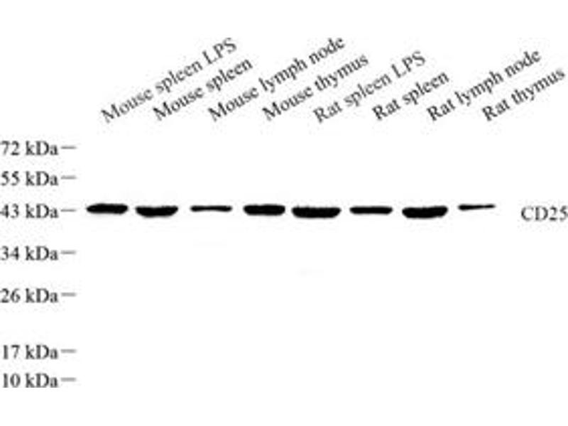 IL-2Rα(Activated T cells IL-2Rα Chain 55), also kown as membrane interleukin-2 receptor (mIL-2R) or CD25, is a protein encoded by IL2RA gene in Human. This protein is 55 kDa which is the high affinity composition of IL-2R. Few IL-2α chains will express in inactive T cells, while the expression will remarkably increase followed by IL-2 accumulation, when T cell surface receptor (TCR) is active. IL-2αchains will become soluble interleukin-2 receptor (sIL-2R) when they are detached from cell membrane into serum, and the molecular weight of sIL-2R is 45 kDa. The concentration of sIL-2R in serum can be used for a mark to measure T cells activation and IL-2Rα chains expression.