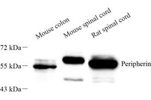 - Peripherin is a 57kD type III intermediate filament that is a specific marker for peripheral neurons, including enteric ganglion cells. Peripherin is expressed in the developing peripheral nervous system and is highly enriched in neuronal derivatives of the neural crest. Peripherin offers an advantage over other neural markers, such as S100 and NSE in that it does not stain chrmaffin cell types.
