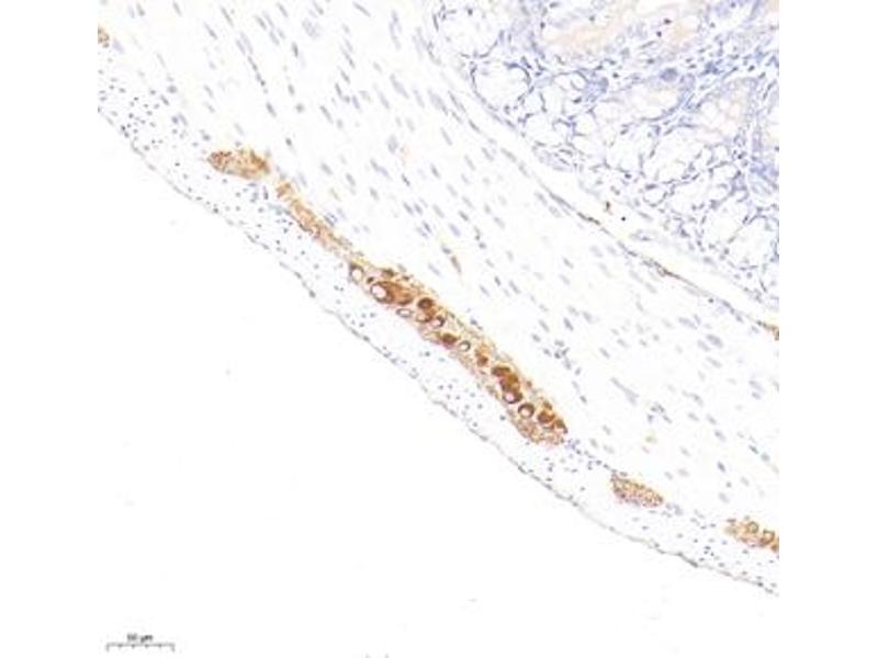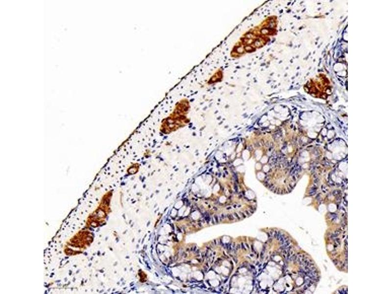 Peripherin is a 57kD type III intermediate filament that is a specific marker for peripheral neurons, including enteric ganglion cells. Peripherin is expressed in the developing peripheral nervous system and is highly enriched in neuronal derivatives of the neural crest. Peripherin offers an advantage over other neural markers, such as S100 and NSE in that it does not stain chrmaffin cell types.