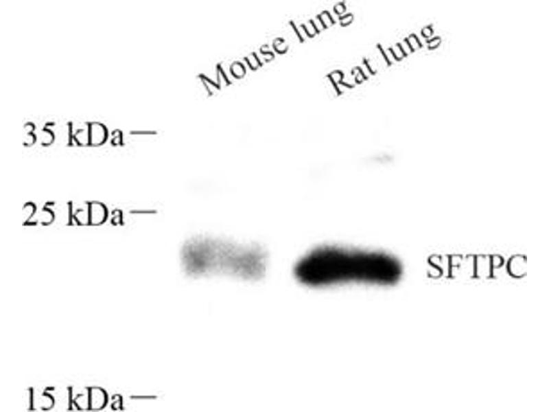 - SFTPC (surfactant protein C), also named as SFTP2, SP5 and SP-C, is a pulmonary surfactant associated proteins promote alveolar stability by lowering the surface tension at the air-liquid interface in the peripheral air spaces. Defects in SFTPC are the cause of pulmonary surfactant metabolism dysfunction type 2 (SMDP2). Genetic variations in SFTPC are associated with respiratory distress syndrome in premature infants (RDS). Two isoforms of the human protein are produced by alternative splicing, this antibody (catalog#10774-1-AP) is a rabbit polyclonal antibody raised with the full-length SFTPC of huam origin.