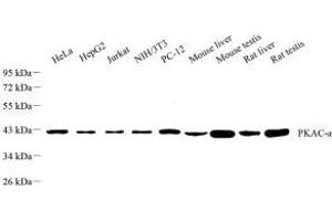 The catalytic subunit α of protein kinase A is a key regulatory enzyme that in humans is encoded by the PRKACA gene. This enzyme is responsible for phosphorylating other proteins and substrates, changing their activity. Protein kinase A catalytic subunit (PKA Cα) is a member of the AGC kinase family (protein kinases A, G, and C), and contributes to the control of cellular processes that include glucose metabolism, cell division, and contextual memory. PKA Cα is part of a larger protein complex that is responsible for controlling when and where proteins are phosphorylated. Defective regulation of PKA holoenzyme activity has been linked to the progression of cardiovascular disease, certain endocrine disorders and cancers.