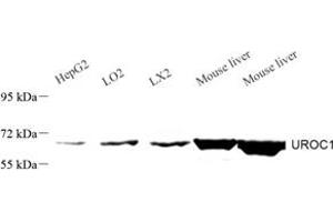 UROC1, also named as Urocanase and Imidazolonepropionate hydrolase, is involved in Urocanase deficiency (UROCD). UROC1 has some isoforms with MW 65-75 kDa and 80 kDa.