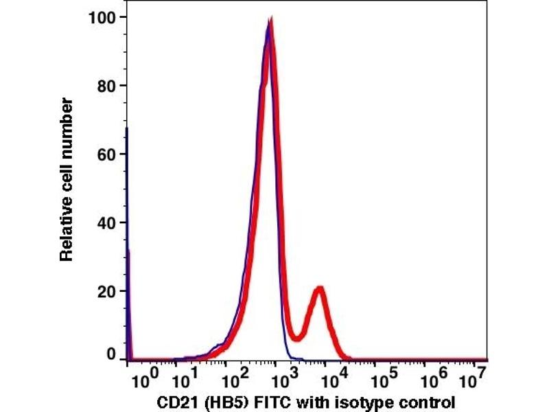 - The mouse monoclonal antibody produced by clone HB5 binds to complement receptor 2 (CR2), known as CD21, a 145 kDa glycoprotein of the complement control protein family. It is a receptor for the complement components C3d and C3g and, under pathological circumstances, for the Epstein-Barr virus (EBV). As complement breakdown fragments remain bound to the agent initiating the complement activation in the first place, CD21 plays an important role in the uptake of immunocomplexes. In addition, it plays a role in B cell development and activation as well as memory B cell survival. Thus, it is a key component in developing and maintaining humoral immune response to T-dependent antigens. CD21 associates with CD19, CD81 and the B cell receptor. The cell surface marker CD21 is expressed on mature B cells and follicular dendritic cells. It is used as a cell marker for the phenotyping of leukemias.