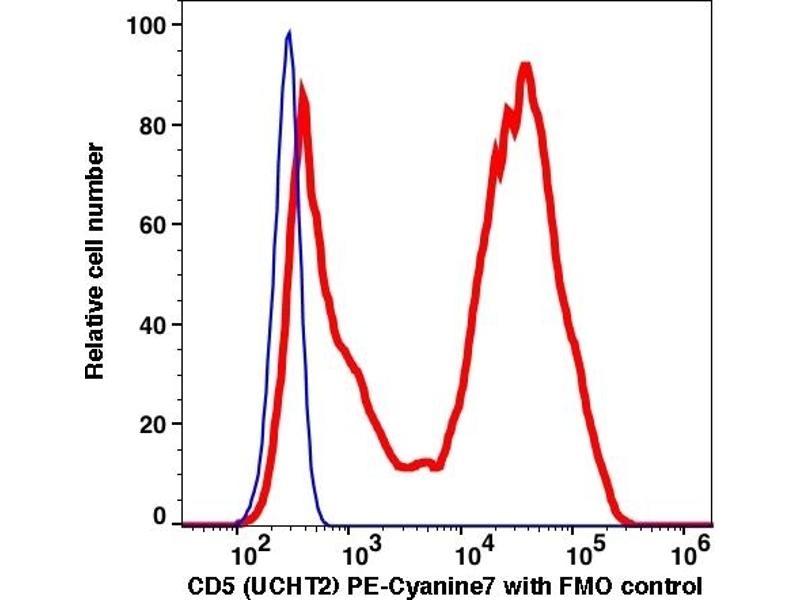The clone UCHT2, a mouse monoclonal antibody selectively binds to a 67 kDa human single-chain type I cell surface glycoprotein known as CD5. It is a member of the scavenger receptor cysteine-rich protein superfamily (SRCR). It is expressed on T lymphocytes, thymocytes, and IgM-secreting B cells (B-1 cells). Chronic lymphocytic leukemia (CLL) is characterized by the accumulation of clonally derived mature CD5+CD19+CD23+CD20+ B cells in the blood, bone marrow, and secondary lymphoid organs.