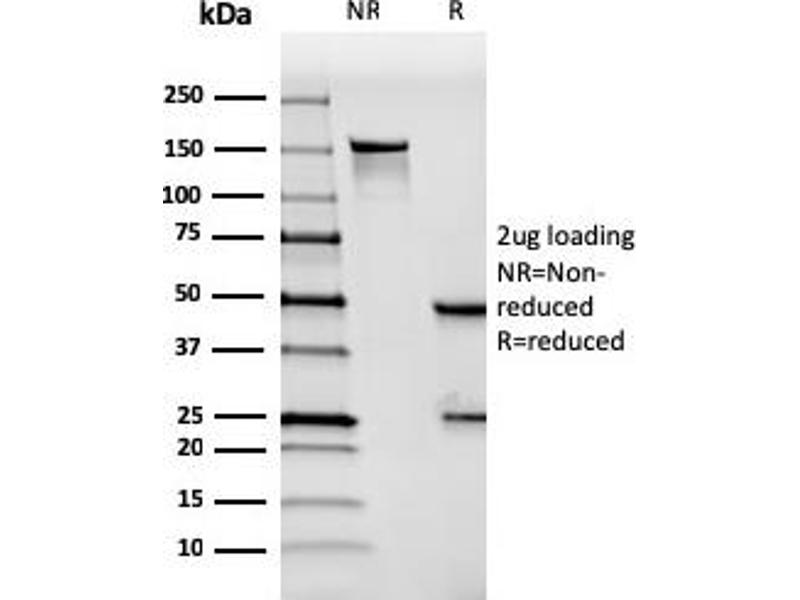 Known Application: Immunohistochemistry (Formalin-fixed) (1-2 μg/mL for 30 minutes at RT),(Staining of formalin-fixed tissues requires heating tissue sections in 10 mM Tris with 1 mM EDTA, pH 9.0, for 45 min at 95°C followed by cooling at RT for 20 minutes),Optimal dilution for a specific application should be determined.