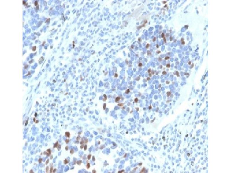 Known Application: Western Blot (2-4 μg/mL), ,Immunohistochemistry (Formalin-fixed) (1-2 μg/mL for 30 minutes at RT),(Staining of formalin-fixed tissues requires heating tissue sections in 10 mM Tris with 1 mM EDTA, pH 9.0, for 45 min at 95 °C followed by cooling at RT for 20 minutes),Optimal dilution for a specific application should be determined.