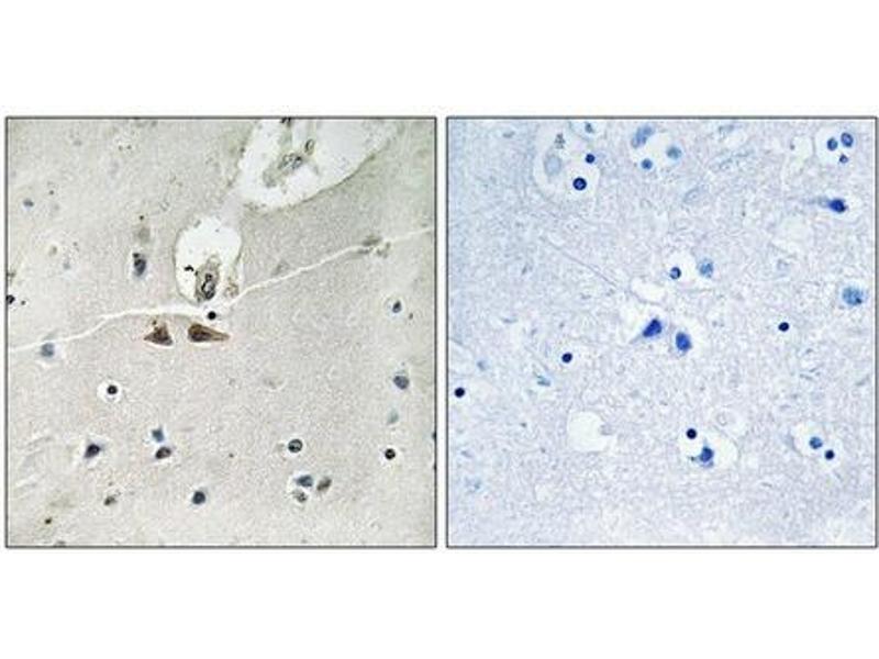 Antibodies were produced by immunizing rabbits with synthetic phosphopeptide and KLH conjugates. Antibodies were purified by affinity-chromatography using epitope-specific phosphopeptide. Non-phospho specific antibodies were removed by chromatogramphy usi