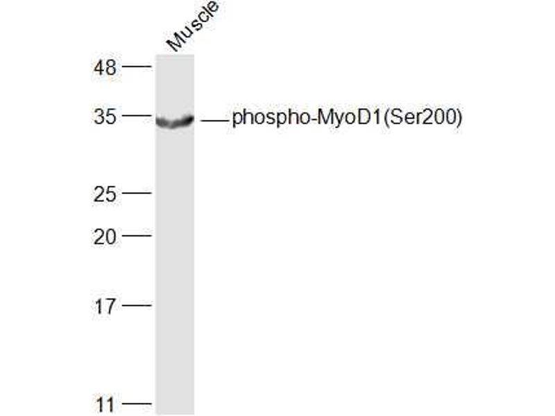 Synonyms: MYOD1phospho S200,Myogenic dferentiation 1, AI503393, bHLHc1, MD1, MGC156574, MYF3, MYOD, MYOD1, PUM, MYOD1_HUMAN.