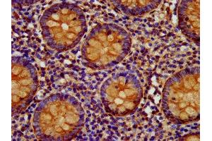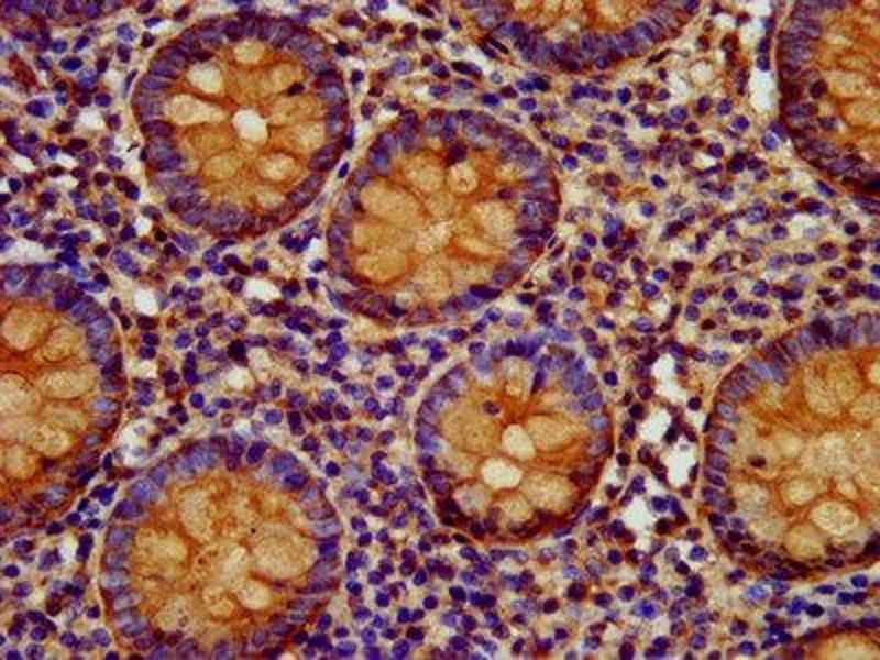 Background: May act as a physical homophilic interaction molecule between intestinal epithelial cells (IECs) and intraepithelial lymphocytes (IELs) at the mucosal epithelium for providing immunological barrier as a first line of defense against mucosal infection. Plays a role in embryonic stem cells proliferation and differentiation. Up-regulates the expression of FABP5, MYC and cyclins A and E.