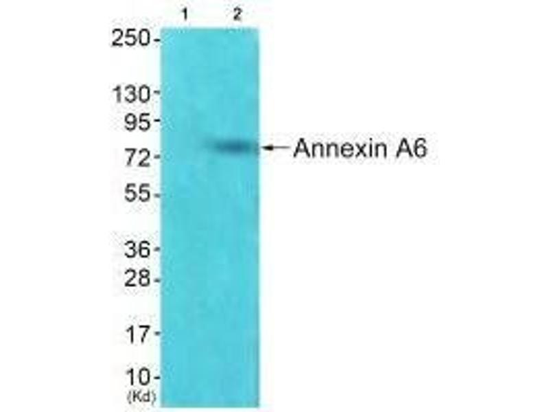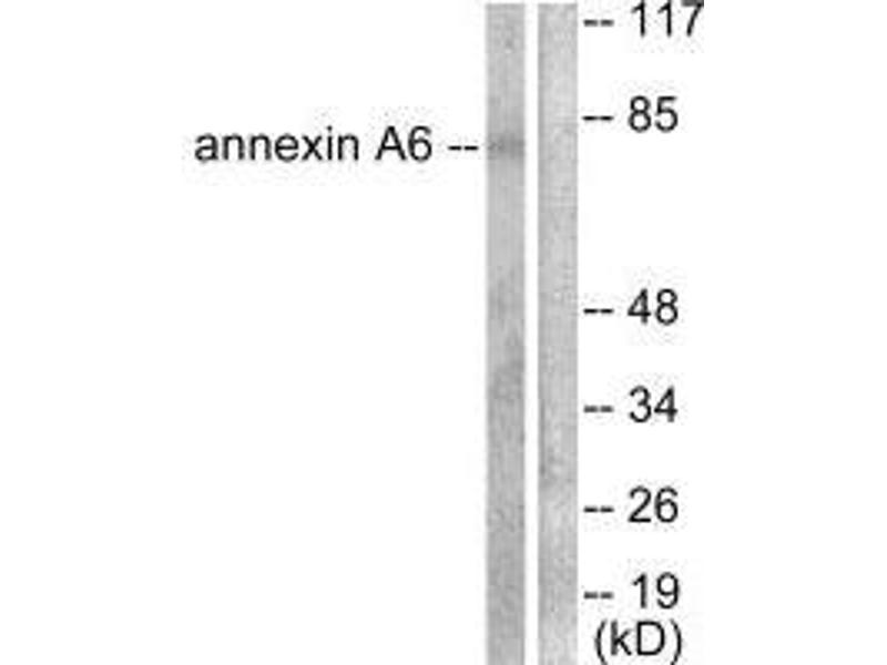 I?ki de Diego, J. Biol. Chem., Aug 2002, 277: 32187 - 32194.Aliases: 67 kDa calelectrin antibody, Annexin A6 antibody, Annexin VI antibody, Annexin VI p68 antibody, Annexin-6 antibody, AnnexinA6 antibody, AnnexinVI antibody, ANX 6 antibody, ANX A6 antibody, ANX6 antibody, ANXA 6 antibody, ANXA6 antibody, ANXA6_HUMAN antibody, Calcium binding protein p68 antibody, Calelectrin antibody, Calphobindin II antibody, Calphobindin-II antibody, CalphobindinII antibody, CBP 68 antibody, CBP68 antibody, Chromobindin 20 antibody, Chromobindin-20 antibody, Chromobindin20 antibody, CPB II antibody, CPB-II antibody, CPBII antibody, Lipocortin VI antibody, LipocortinVI antibody, p68 antibody, p70 antibody, Protein III antibody, ProteinIII antibody