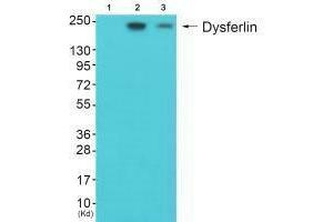 Eriko Fujita, Hum. Mol. Genet., Mar 2007, 16: 618 - 629.Aliases: DMAT antibody, DYSF antibody, DYSF_HUMAN antibody, Dysferlin antibody, Dysferlin limb girdle muscular dystrophy 2B (autosomal recessive) antibody, Dysferlin limb girdle muscular dystrophy 2B antibody, Dystrophy associated fer 1 like 1 antibody, Dystrophy associated fer 1 like protein antibody, Dystrophy associated fer1 like 1 antibody, Dystrophy associated fer1 like protein antibody, Dystrophy-associated fer-1-like protein antibody, Fer 1 like protein 1 antibody, Fer-1-like protein 1 antibody, Fer1 like protein 1 antibody, FER1L1 antibody, FLJ00175 antibody, FLJ90168 antibody, LGMD 2B antibody, LGMD2B antibody, Limb girdle muscular dystrophy 2B (autosomal recessive) antibody, Limb girdle muscular dystrophy 2B antibody, Miyoshi myopathy antibody, MM antibody, MMD1 antibody
