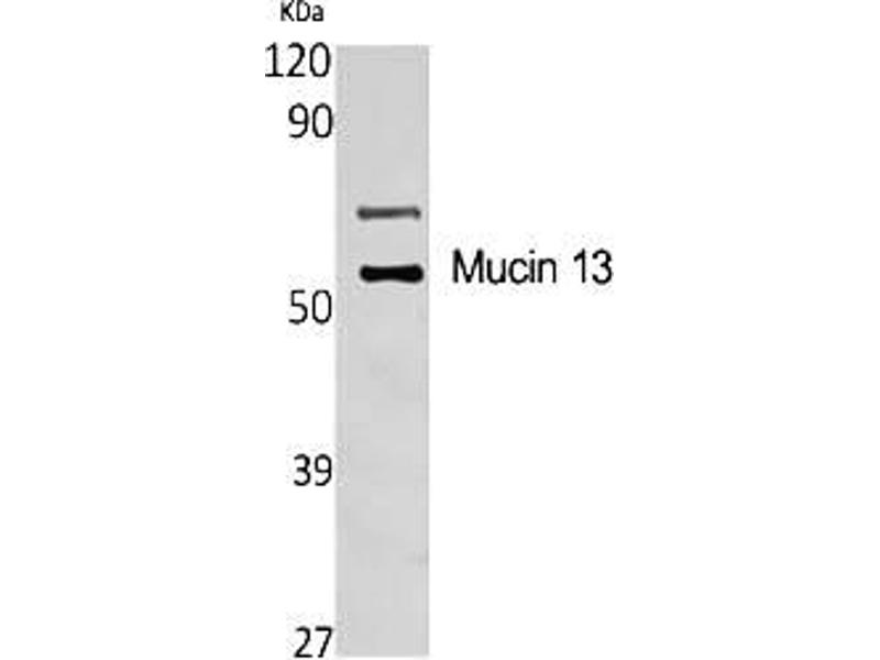 - Mucin 13 Polyclonal Antibody detects endogenous levels of Mucin 13 protein.