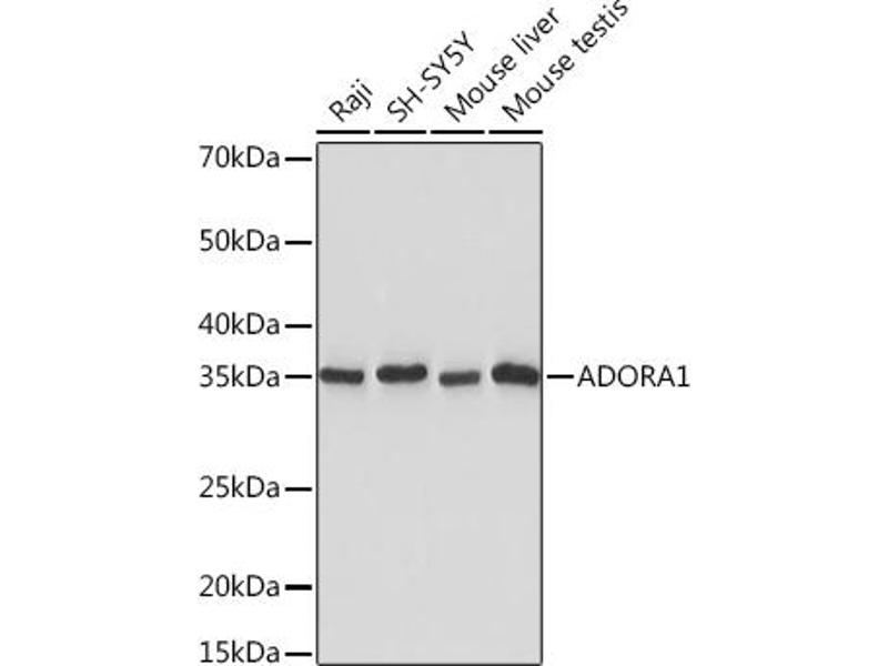 The protein encoded by this gene is an adenosine receptor that belongs to the G-protein coupled receptor 1 family. There are 3 types of adenosine receptors, each with a specific pattern of ligand binding and tissue distribution, and together they regulate a diverse set of physiologic functions. The type A1 receptors inhibit adenylyl cyclase, and play a role in the fertilization process. Animal studies also suggest a role for A1 receptors in kidney function and ethanol intoxication. Transcript variants with alternative splicing in the 5' UTR have been found for this gene. [provided by RefSeq, Jul 2008],RDC7,Apoptosis,Cardiovascular,Cell Biology & Developmental Biology,Cell Intrinsic Innate Immunity Signaling Pathway,G protein signaling,G protein signaling_G-Protein-Coupled Receptors(GPCR),Heart,Heart_Cardiac arrhythmias,Immunology & Inflammation,Neuroscience,Signal Transduction,ADORA1