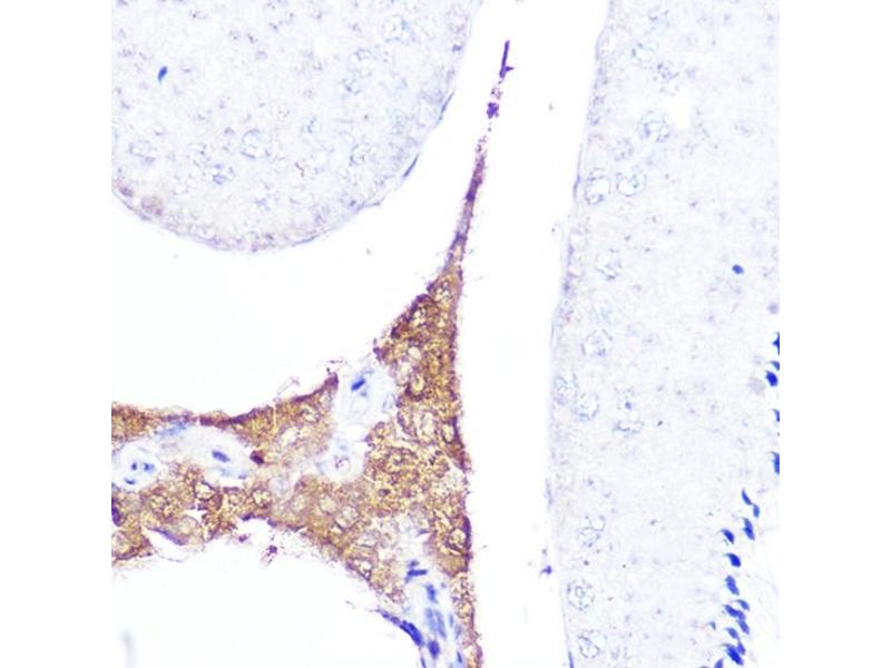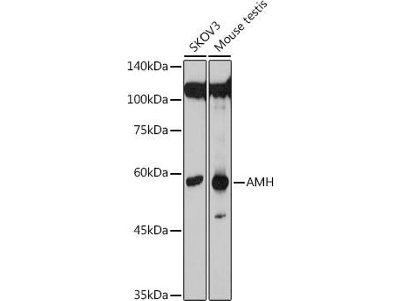 Anti-Mullerian hormone is a member of the transforming growth factor-beta gene family which mediates male sexual differentiation. Anti-Mullerian hormone causes the regression of Mullerian ducts which would otherwise differentiate into the uterus and fallopian tubes. Some mutations in the anti-Mullerian hormone result in persistent Mullerian duct syndrome.,AMH,MIF,MIS,Signal Transduction,Cell Biology & Developmental Biology,Growth factor,TGF-b-Smad Signaling Pathway,Stem Cells,Ligand,AMH