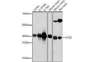 This gene encodes a ubiquitin-like-conjugating enzyme and is a component of ubiquitination-like systems involved in autophagy, the process of degradation, turnover and recycling of cytoplasmic constituents in eukaryotic cells. This protein is known to play a role in regulation of autophagy during cell death. A pseudogene of this gene is located on chromosome 20. Alternative splicing results in multiple transcript variants encoding different isoforms. [provided by RefSeq, Jul 2013],ATG3,APG3,APG3-LIKE,APG3L,PC3-96,Autophagy,Autophagy_ATGs,Cancer,Cardiovascular,Cell Biology & Developmental Biology,Endocrine & Metabolism,Heart,Mitochondrial metabolism,Neurodegenerative Diseases,Neuroscience,Signal Transduction,Tumor suppressors,Ubiquitin,ATG3