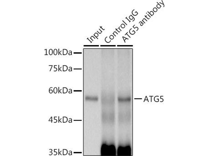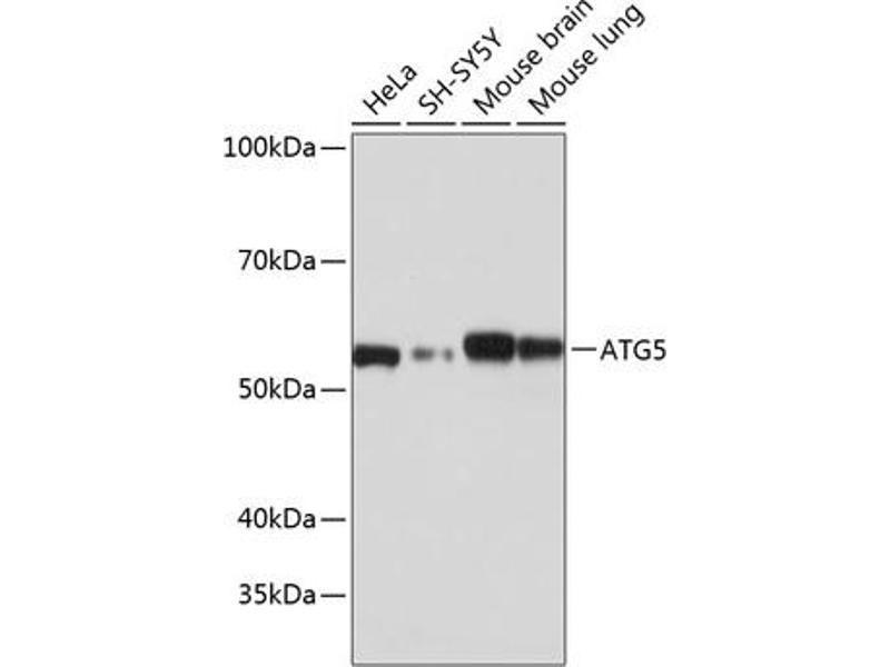 The protein encoded by this gene, in combination with autophagy protein 12, functions as an E1-like activating enzyme in a ubiquitin-like conjugating system. The encoded protein is involved in several cellular processes, including autophagic vesicle formation, mitochondrial quality control after oxidative damage, negative regulation of the innate antiviral immune response, lymphocyte development and proliferation, MHC II antigen presentation, adipocyte differentiation, and apoptosis. Several transcript variants encoding different protein isoforms have been found for this gene. [provided by RefSeq, Sep 2015],ATG5,APG5,APG5-LIKE,APG5L,ASP,hAPG5,Apoptosis,Autophagy,Autophagy_ATGs,Cancer,Cardiovascular,Cell Biology & Developmental Biology,Endocrine & Metabolism,Heart,Immunology & Inflammation,Mitochondrial metabolism,Signal Transduction,Ubiquitin,ATG5