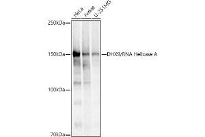 This gene encodes a member of the DEAH-containing family of RNA helicases. The encoded protein is an enzyme that catalyzes the ATP-dependent unwinding of double-stranded RNA and DNA-RNA complexes. This protein localizes to both the nucleus and the cytoplasm and functions as a transcriptional regulator. This protein may also be involved in the expression and nuclear export of retroviral RNAs. Alternate splicing results in multiple transcript variants. Pseudogenes of this gene are found on chromosomes 11 and 13.,DHX9,DDX9,LKP,NDH2,NDHII,RHA,Epigenetics & Nuclear Signaling,RNA Binding,Nuclear Receptor Signaling,DHX9