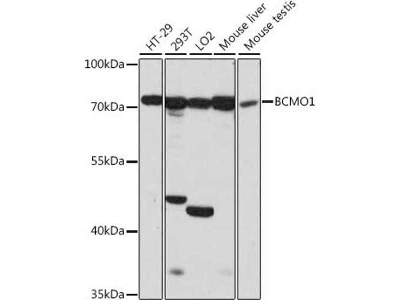 This anti-BCMO1 antibody is a 兔 多克隆 antibody detecting BCMO1 in WB. Suitable for 人.