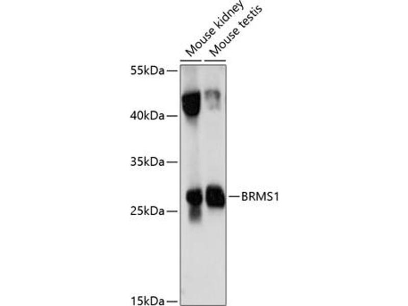 This gene reduces the metastatic potential, but not the tumorogenicity, of human breast cancer and melanoma cell lines. The protein encoded by this gene localizes primarily to the nucleus and is a component of the mSin3a family of histone deacetylase complexes (HDAC). The protein contains two coiled-coil motifs and several imperfect leucine zipper motifs. Alternative splicing results in two transcript variants encoding different isoforms.,BRMS1,Epigenetics & Nuclear Signaling,Cancer,Tumor suppressors,BRMS1