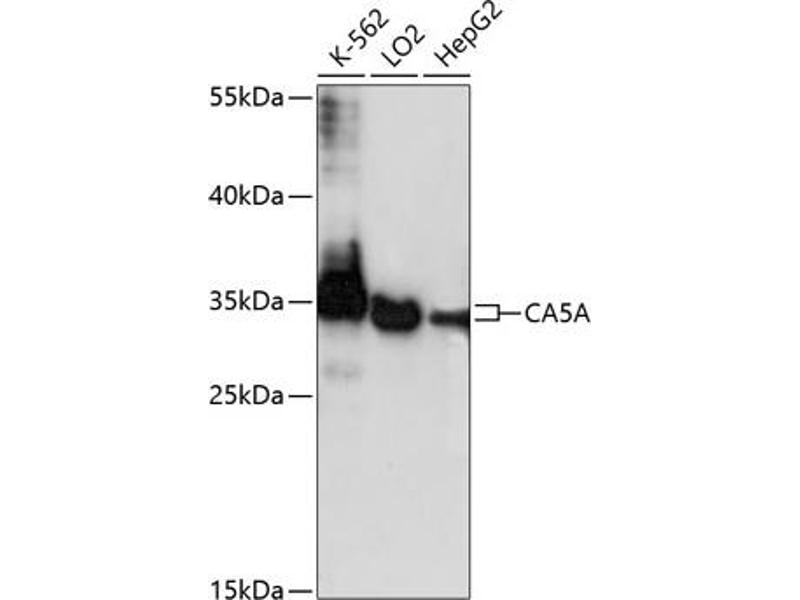 - Carbonic anhydrases (CAs) are a large family of zinc metalloenzymes that catalyze the reversible hydration of carbon dioxide. They participate in a variety of biological processes, including respiration, calcification, acid-base balance, bone resorption, and the formation of aqueous humor, cerebrospinal fluid, saliva, and gastric acid. They show extensive diversity in tissue distribution and in their subcellular localization. CA VA is localized in the mitochondria and expressed primarily in the liver. It may play an important role in ureagenesis and gluconeogenesis. CA5A gene maps to chromosome 16q24.3 and an unprocessed pseudogene has been assigned to 16p12-p11.2.,CA5A,CA5,CA5AD,CAV,CAVA,GS1-21A4.1,Signal Transduction,Endocrine & Metabolism,Mitochondrial metabolism,Mitochondrial markers,CA5A