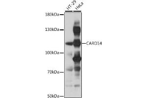 This gene encodes a caspase recruitment domain-containing protein that is a member of the membrane-associated guanylate kinase (MAGUK) family of proteins. Members of this protein family are scaffold proteins that are involved in a diverse array of cellular processes including cellular adhesion, signal transduction and cell polarity control. This protein has been shown to specifically interact with BCL10, a protein known to function as a positive regulator of cell apoptosis and NF-kappaB activation. Alternate splicing results in multiple transcript variants.,CARD14,BIMP2,CARMA2,PRP,PSORS2,PSS1,Cell Biology & Developmental Biology,Apoptosis,Caspases,CARD14