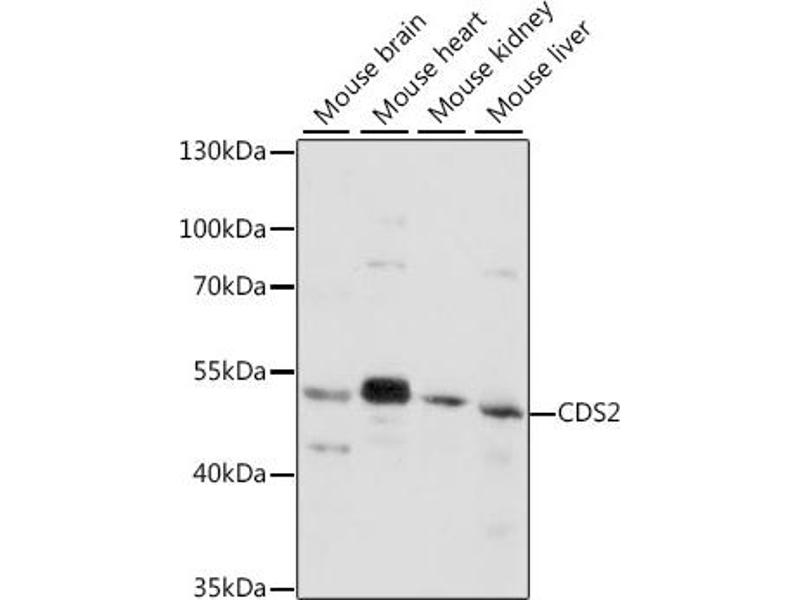Breakdown products of phosphoinositides are ubiquitous second messengers that function downstream of many G protein-coupled receptors and tyrosine kinases regulating cell growth, calcium metabolism, and protein kinase C activity. This gene encodes an enzyme which regulates the amount of phosphatidylinositol available for signaling by catalyzing the conversion of phosphatidic acid to CDP-diacylglycerol. This enzyme is an integral membrane protein localized to two subcellular domains, the matrix side of the inner mitochondrial membrane where it is thought to be involved in the synthesis of phosphatidylglycerol and cardiolipin and the cytoplasmic side of the endoplasmic reticulum where it functions in phosphatidylinositol biosynthesis. Two genes encoding this enzyme have been identified in humans, one mapping to human chromosome 4q21 and a second to 20p13.,CDS2,Signal Transduction,Endocrine & Metabolism,Mitochondrial metabolism,Mitochondrial markers,Lipid Metabolism,CDS2